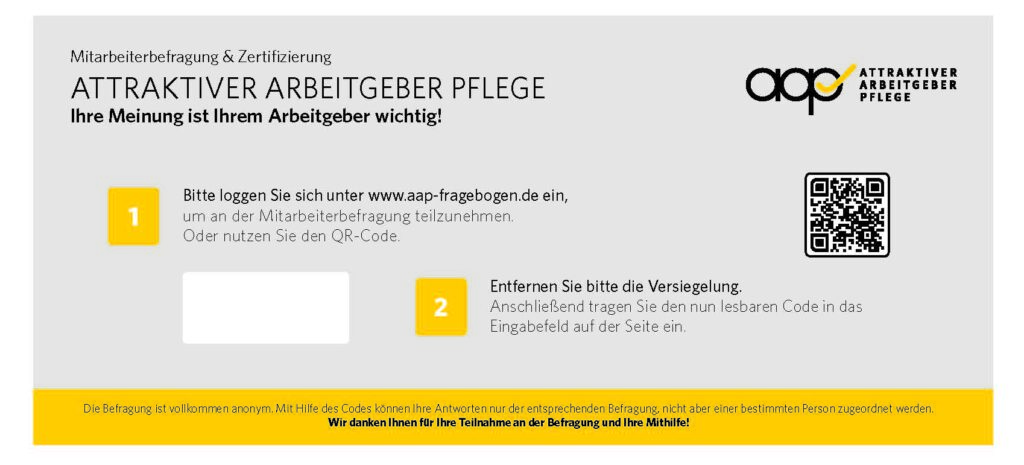 Die weiße Fläche ist eine Versiegelung, unter der sich ein Einladungscode befindet. Mit diesem Code können sich Ihre Mitarbeiter:innen auf der Seite www.aap-fragebogen.de einloggen.